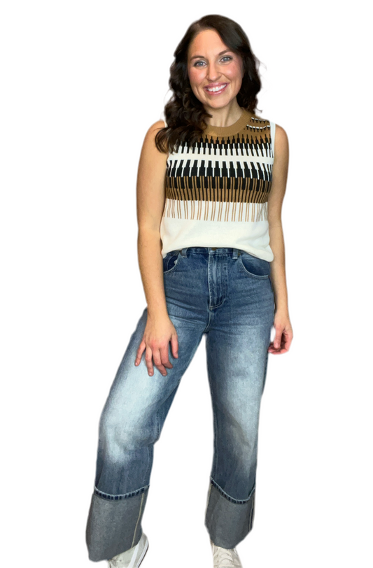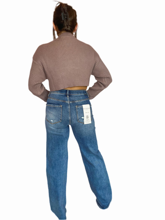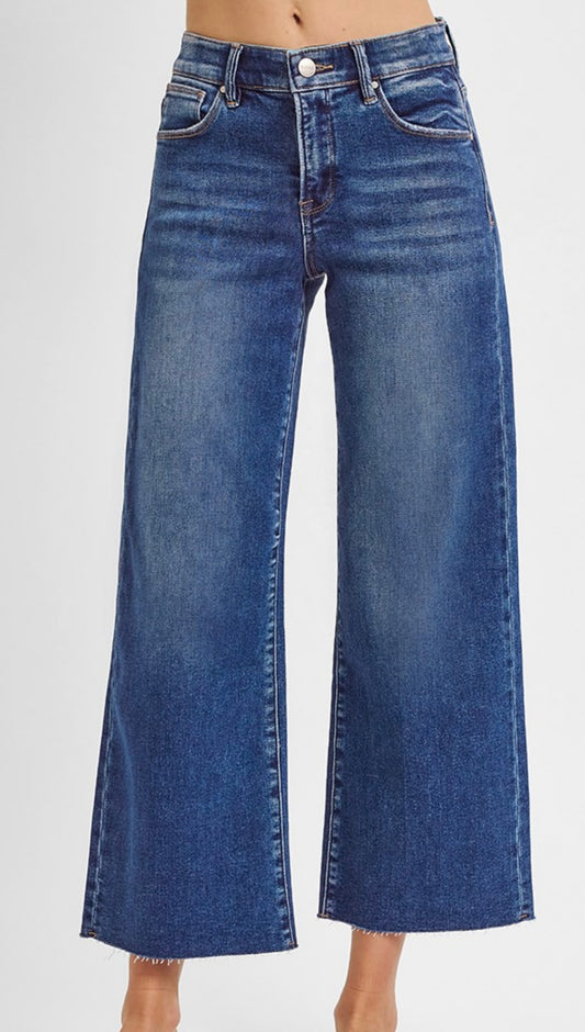 Mid-Rise Crop Wide Leg Jean with Tummy Control