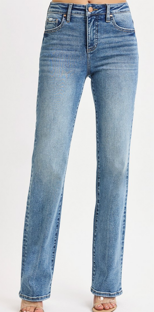 Straight Medium Wash High-Rise Jean with Tummy Control